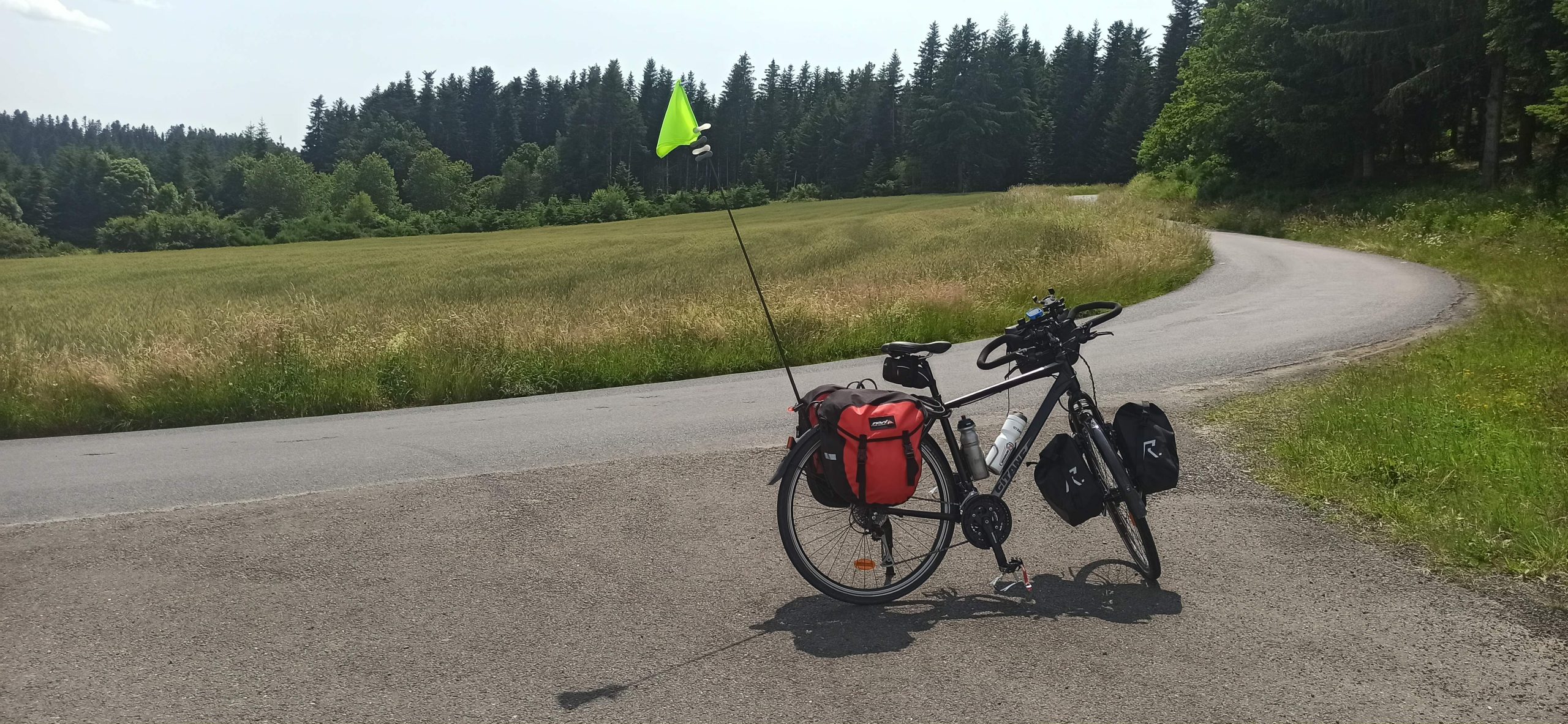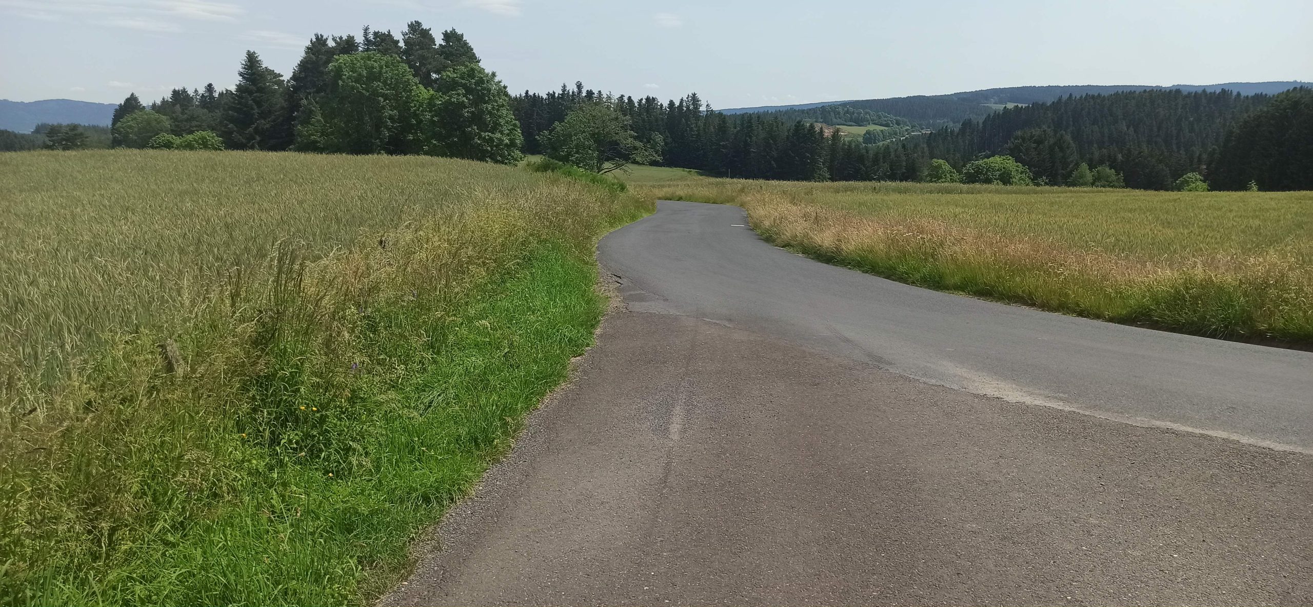 Le troisième col est plus pervers car, lors de la préparation du parcours, sur carte, j’ai choisi des routes à faible circulation, mais là le parcours m’amène sur une montée impossible pour moi et mes 40 kilos de bagages + vélo. Obligé de chercher un autre itinéraire avec un détour de 10 km. Arrivé vers 1000 m, j’alterne montées et descentes.