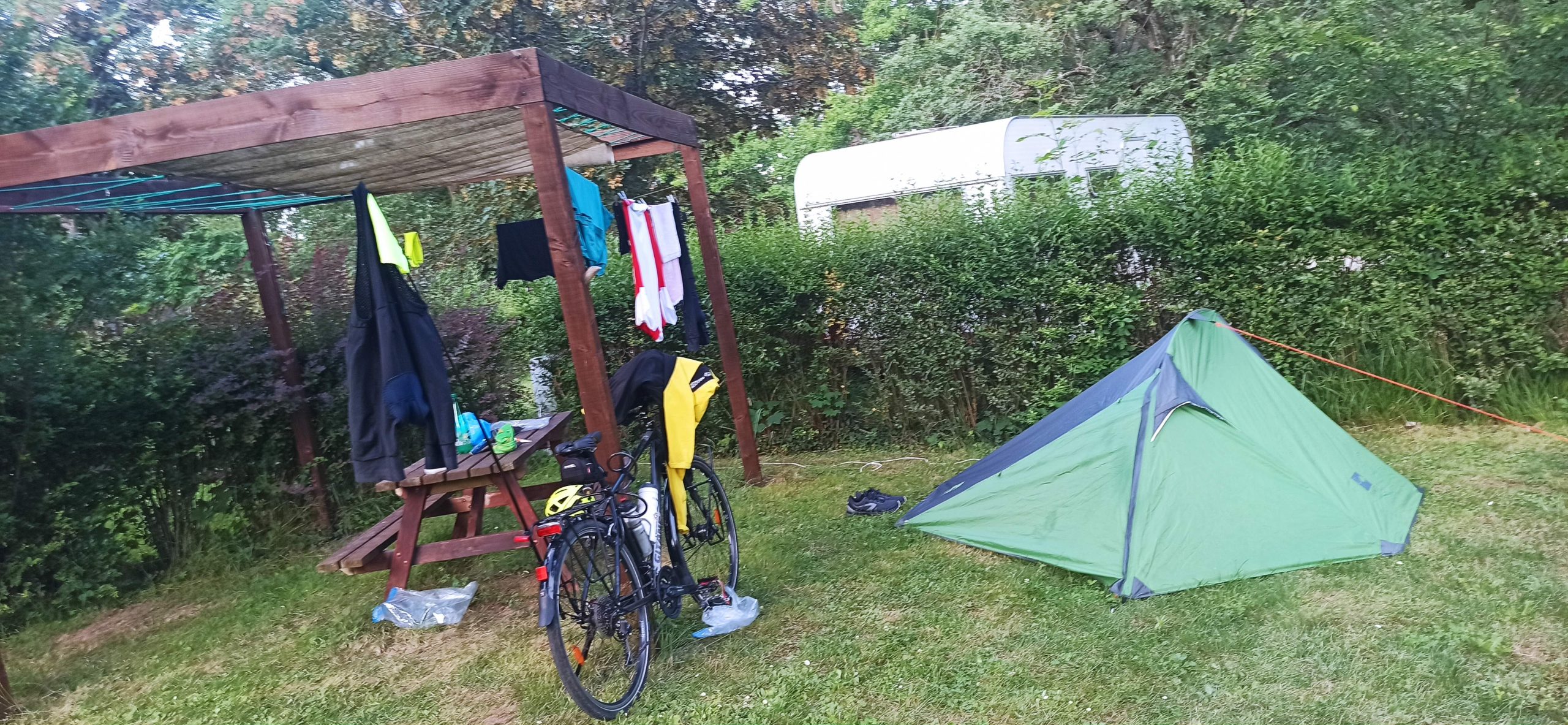 L’emplacement est spécialement aménagé pour les randonneurs, le fil à linge, la table et les bancs sont très appréciables.