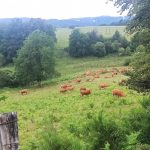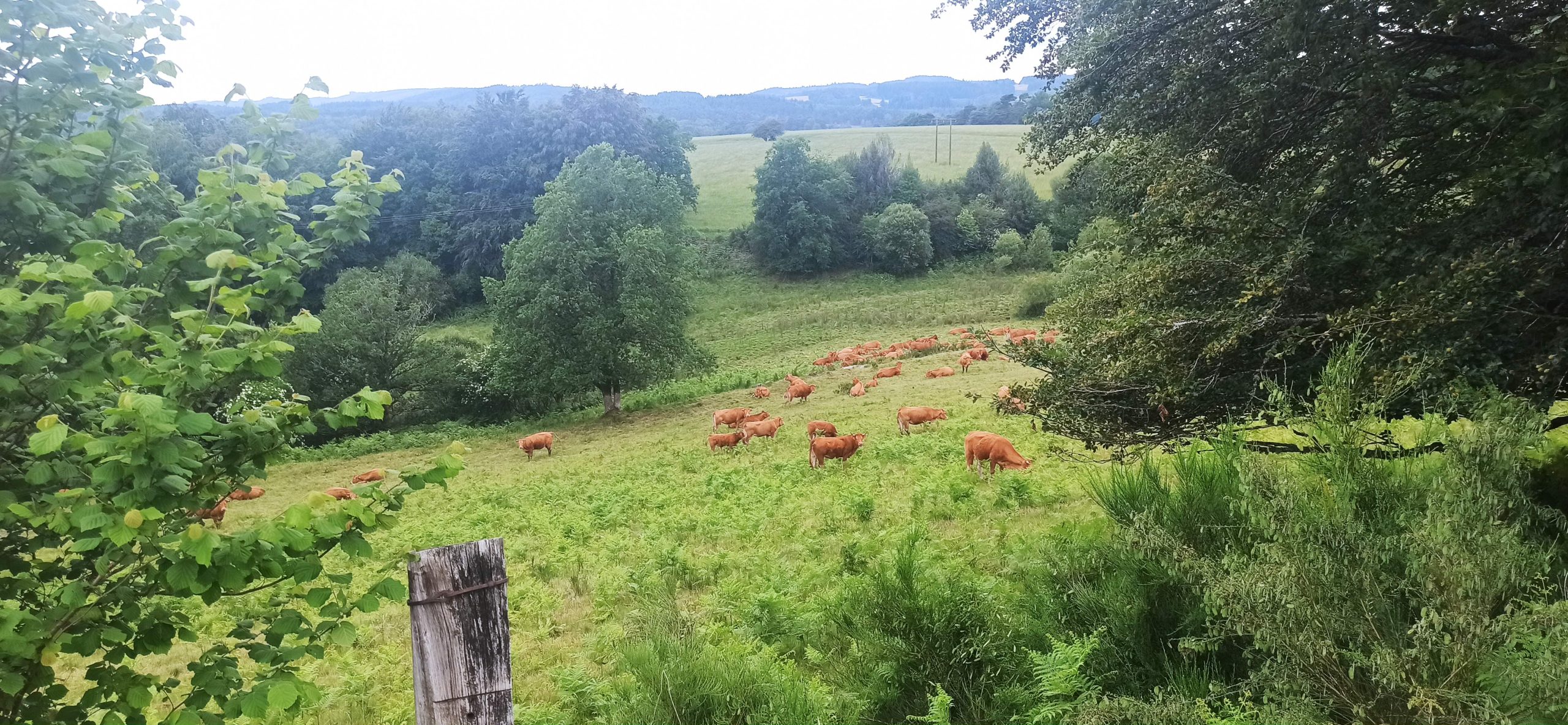 Je passe La Bourboule, qui touche le Mont-Dore et je quitte l’Auvergne pour la Corrèze et les paysages changent vraiment. Plus (+) de forêts, des vallons, des pentes plus douces.