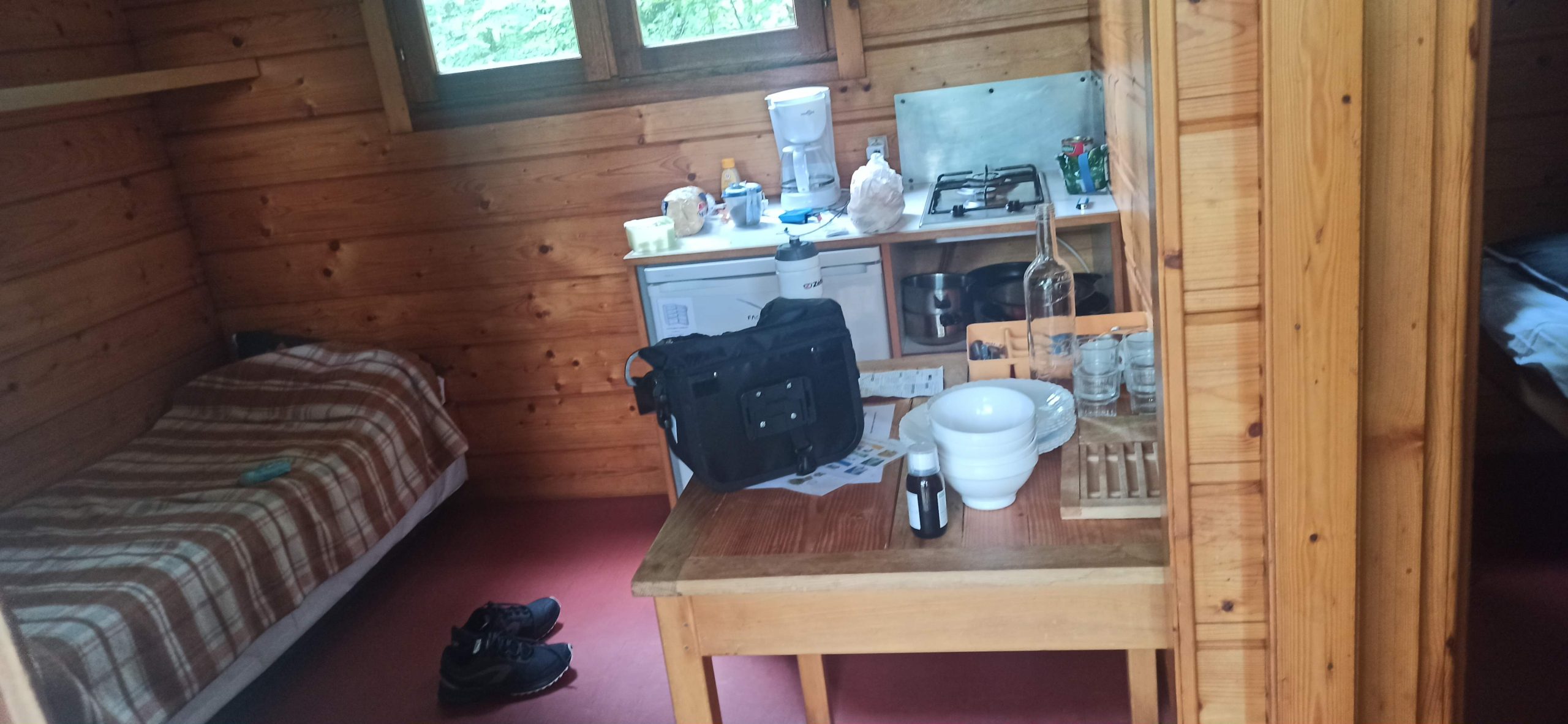 Je loue une cabane pour faire sécher tout mon matériel que j’avais plié sous la pluie.