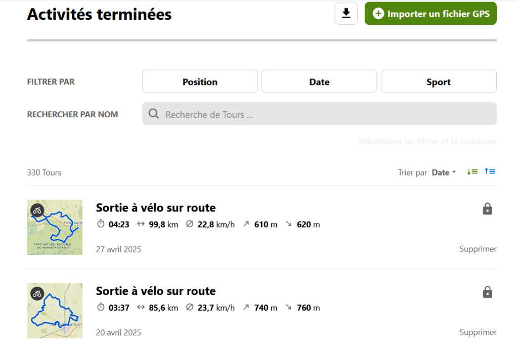 Attention les traces GPS ne doivent pas être utilisées en exclusivité car les « copains » ont peut être fait des détours (acheter son pain par exemple). Alors si vous suivez une piste cyclable surveillez votre GPS ET les panneaux.